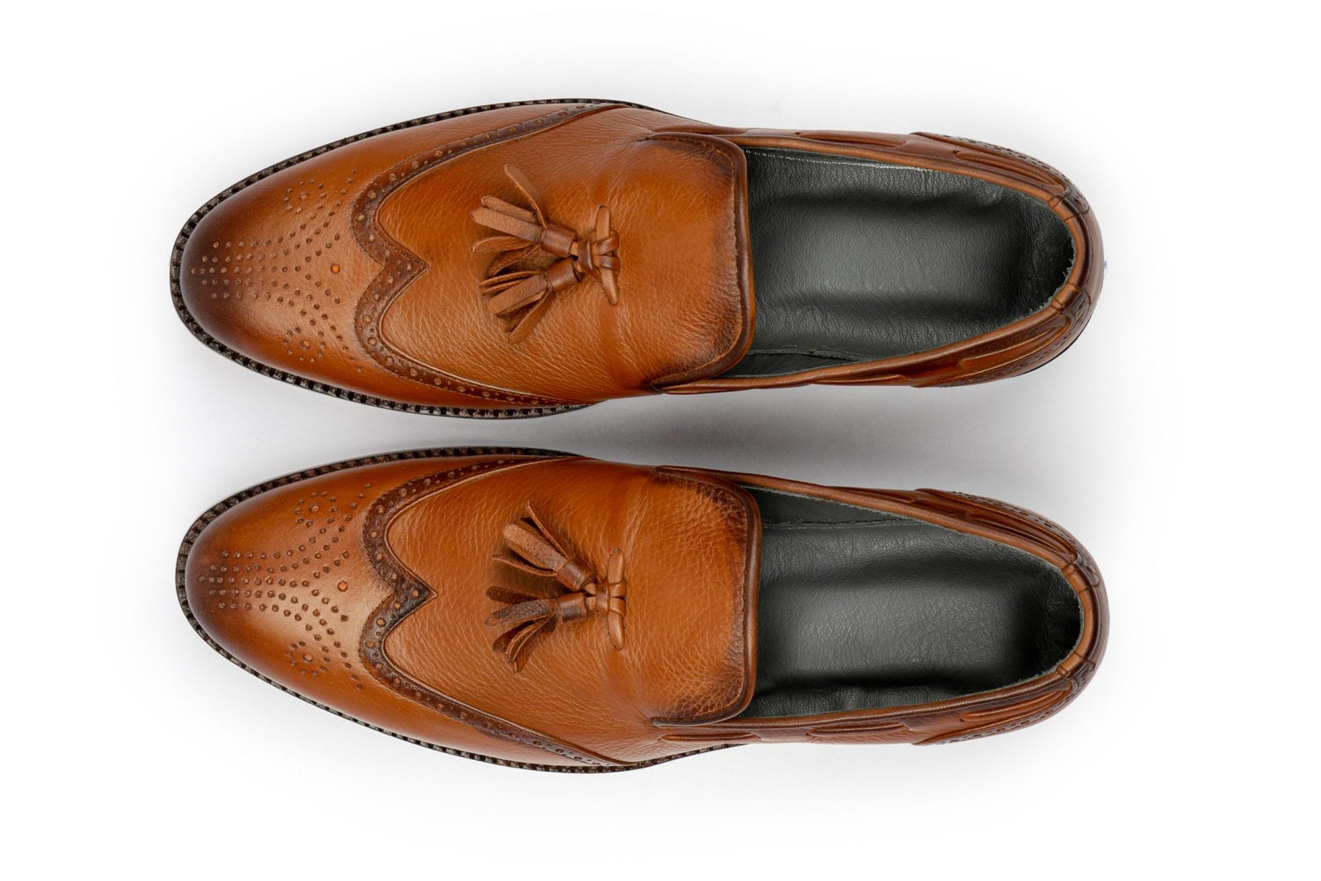 Classic full Goodyear Welted Brogued two tone Tan Wing Tip Tassle Moccasins