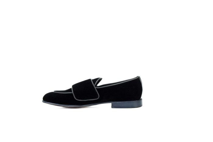 Blake Stitched Black buttoned Velvet Loafers.