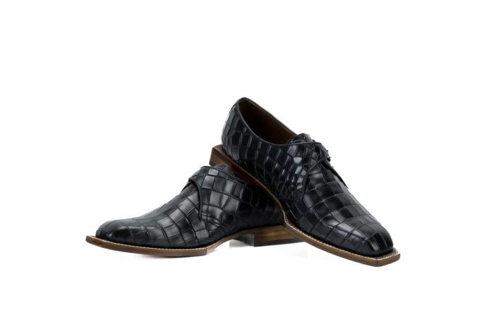 Black Crocodile Impressioned Half Goodyear Welted single Monk Straps.