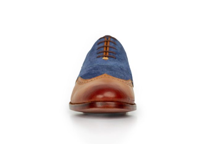 Two-toned Blue Suede and Tan Leather Full Goodyear Welted Wingtip Oxfords
