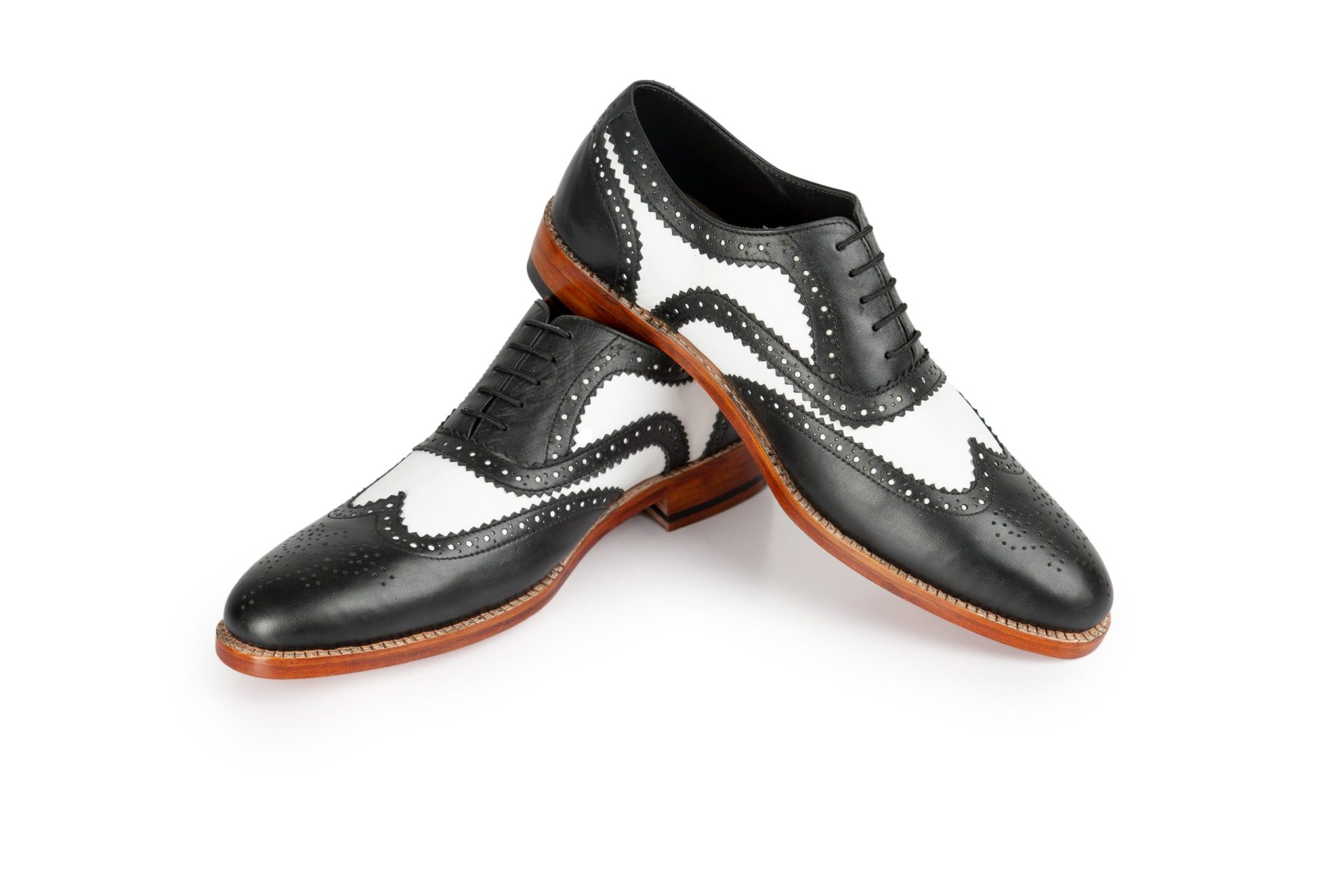 Two toned Black and White Brogued Full Goodyear Welted Wingtip Oxfords