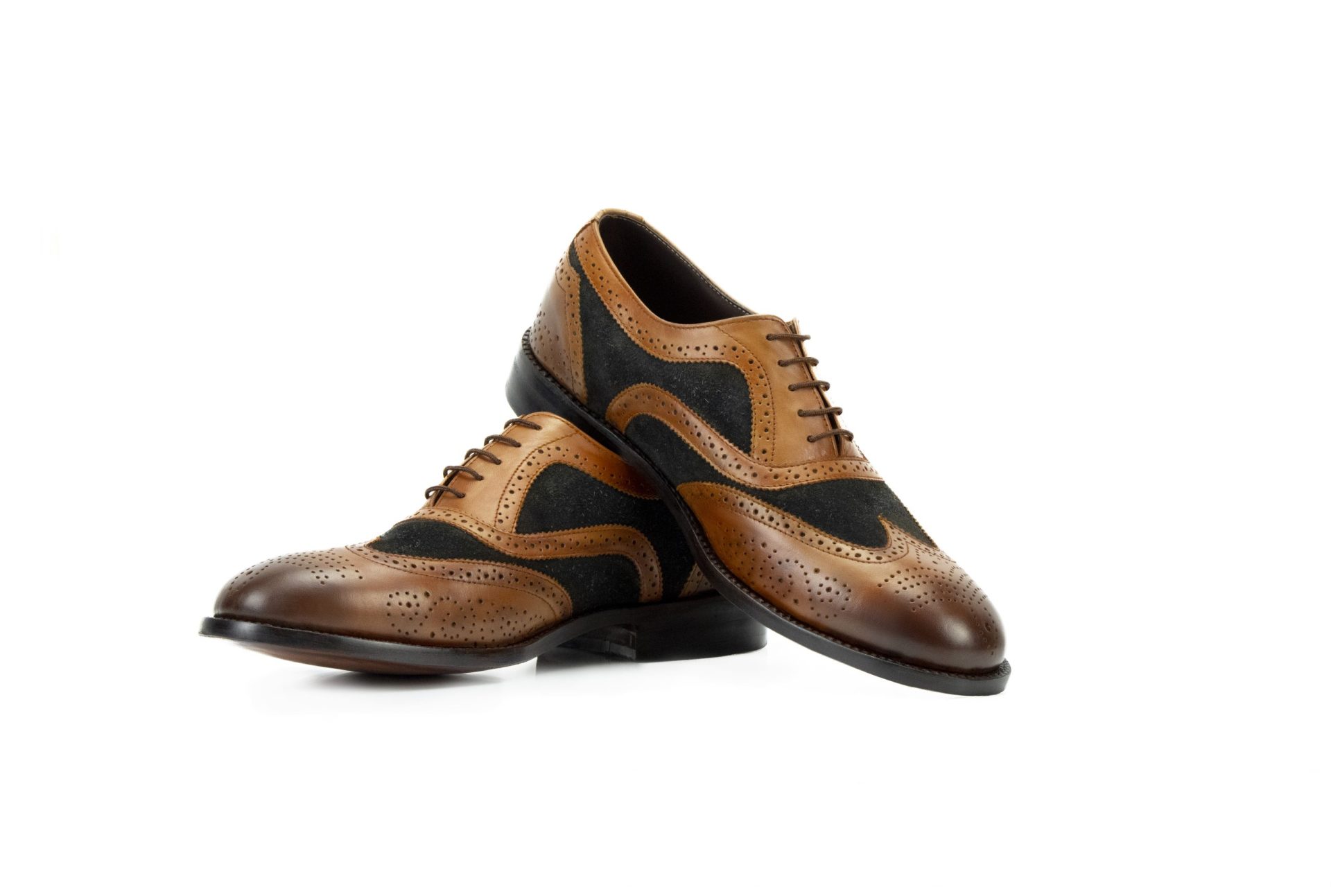 Two toned Black suede and Brown leather Wing-tip Brogued Full Goodyear Welted Oxfords